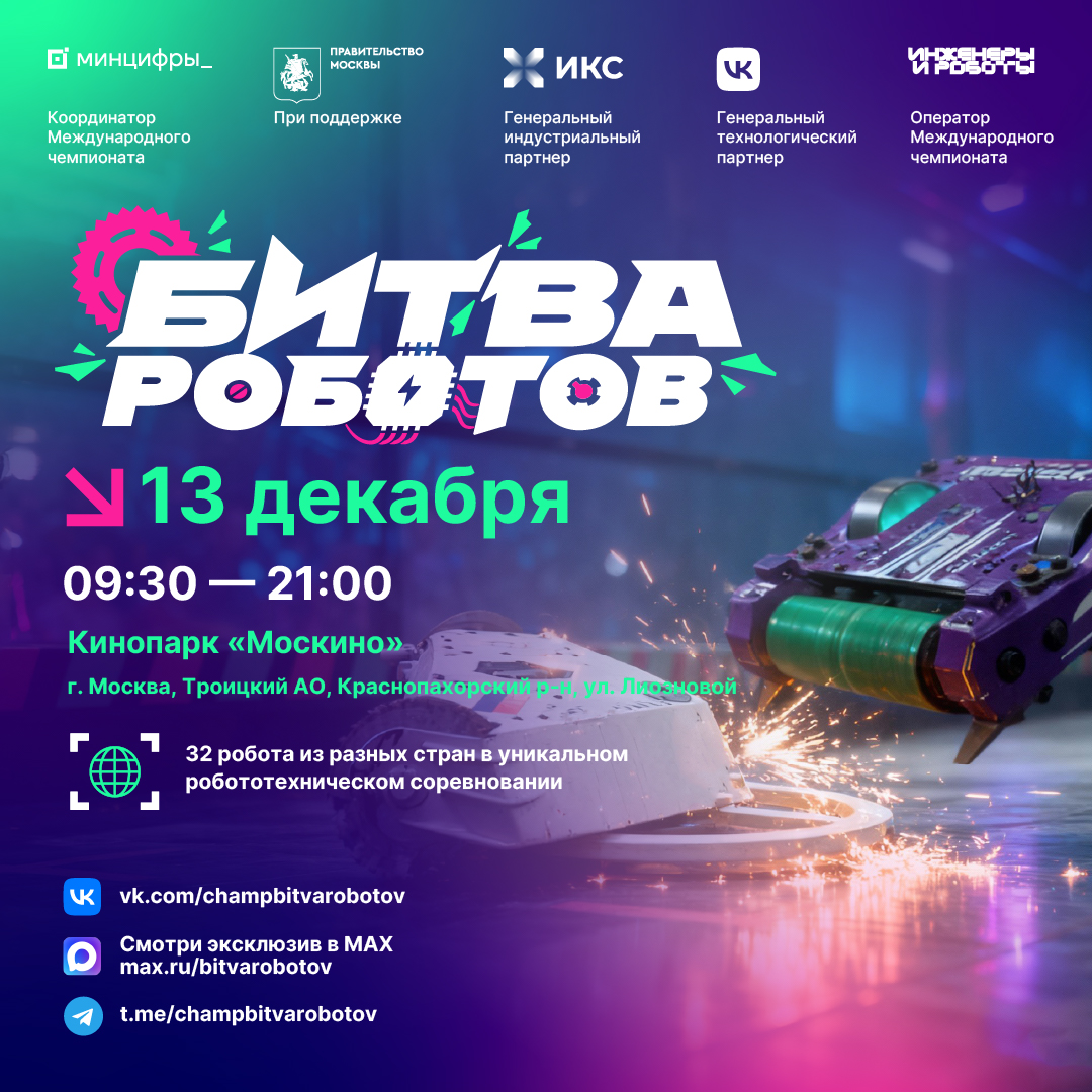 13 декабря в Москве состоится финальный этап «Битвы роботов»