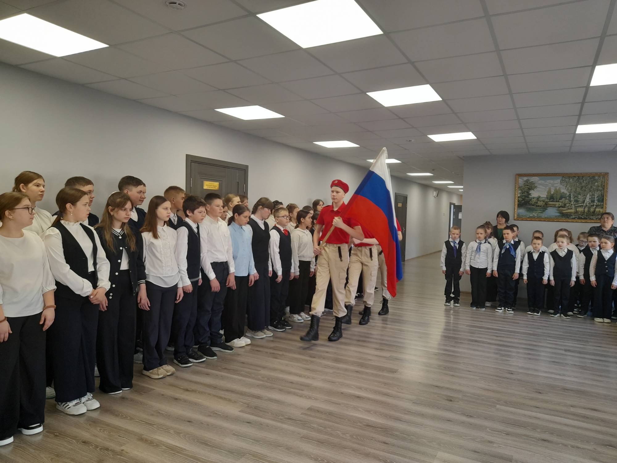 Сегодняшний понедельник начался традиционно: с общешкольной линейки, церемонии выноса флага и исполнения Государственного гимна Российской Федерации.