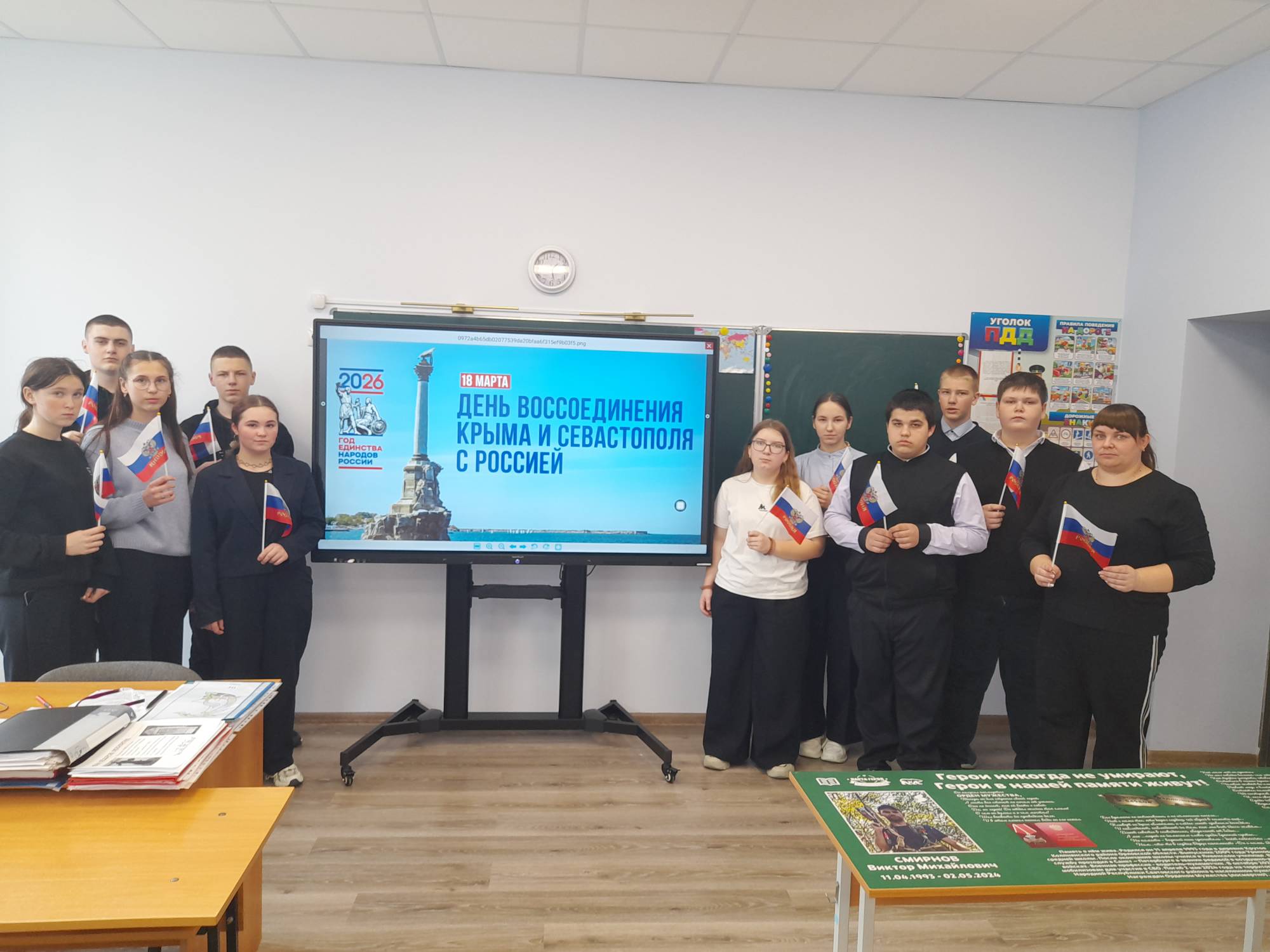 Кроме того, классные руководители провели тематические классные часы, посвященные Дню воссоединения Крыма с Россией. Эти встречи стали площадкой для живого диалога, обсуждения исторических фактов и формирования у школьников гражданской позиции. Ученики активно задавали вопросы, делились своими мыслями и впечатлениями, что способствовало более глубокому пониманию значимости этого исторического события.