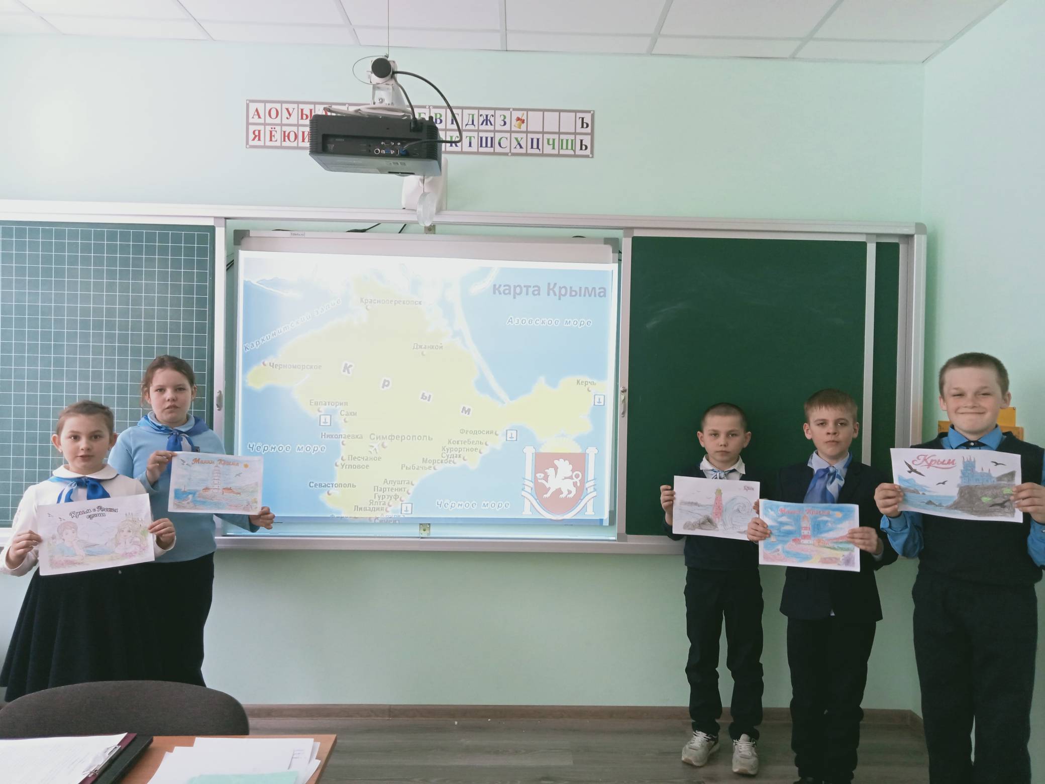 На уроке изобразительного искусства юные художники с энтузиазмом воплотили свои представления о Крыме и его воссоединении на бумаге.