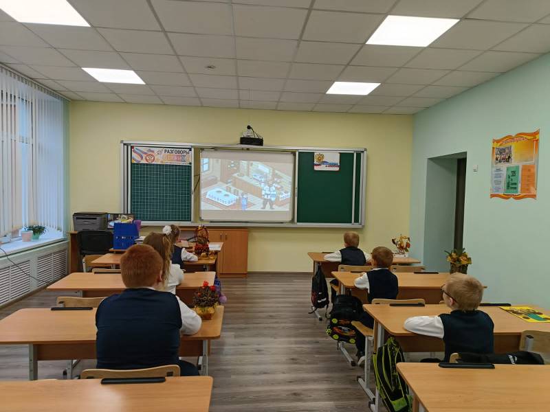 После линейки ученики отправились на внеурочное занятие "Разговоры о важном", посвящённое теме "О городах России. Ко Дню народного единства».