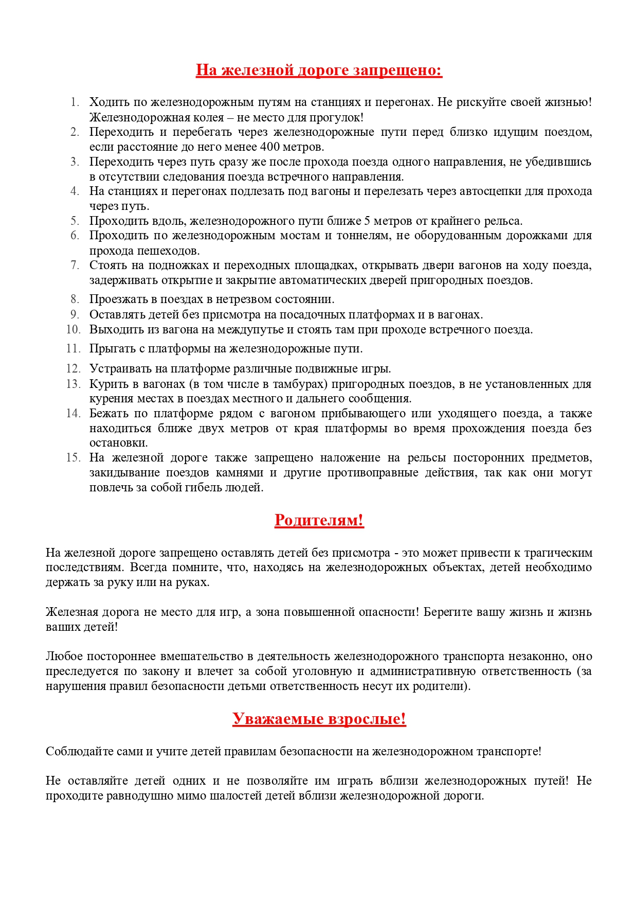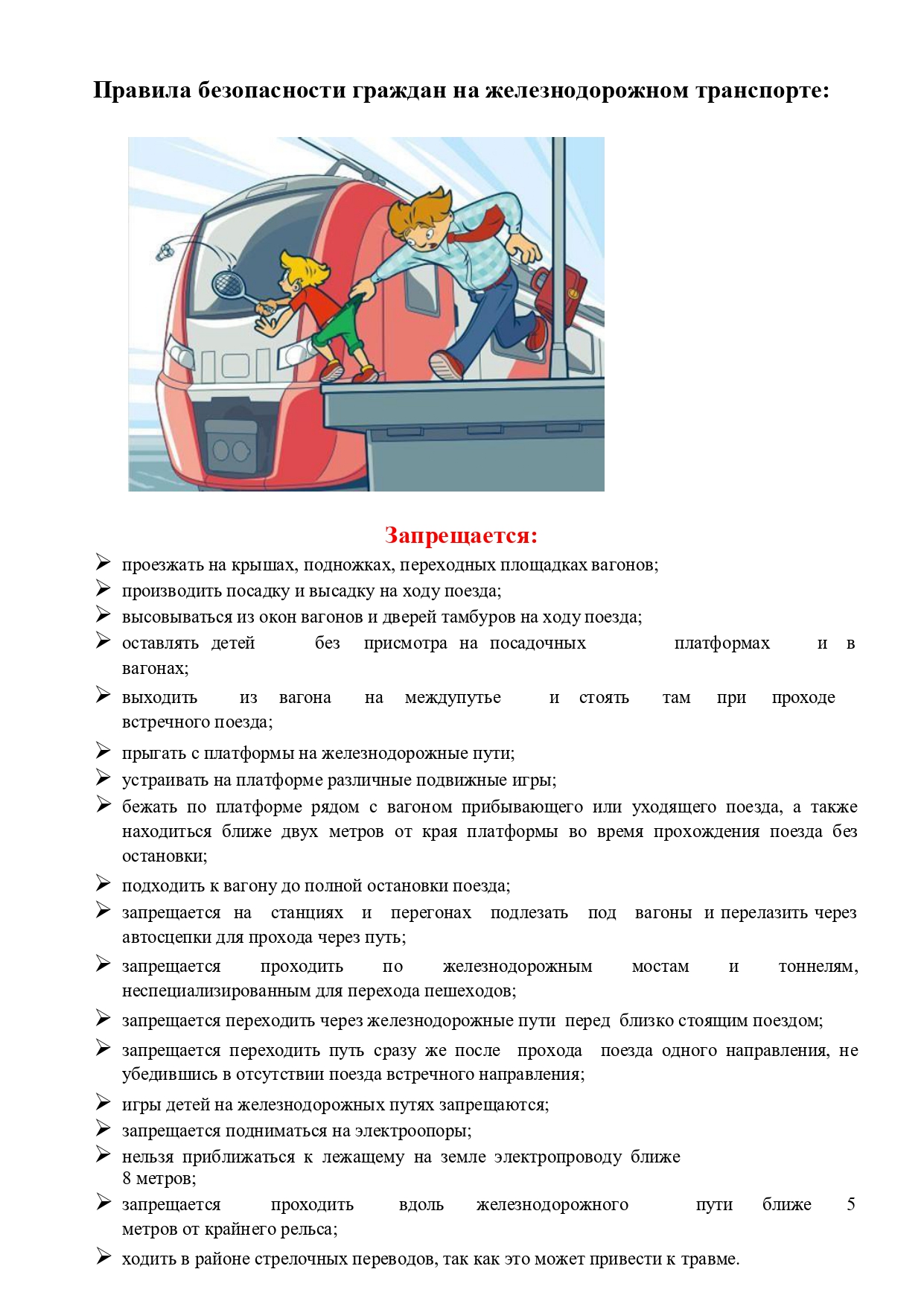 Памятки "Правила поведения на железнодорожном транспорте"
