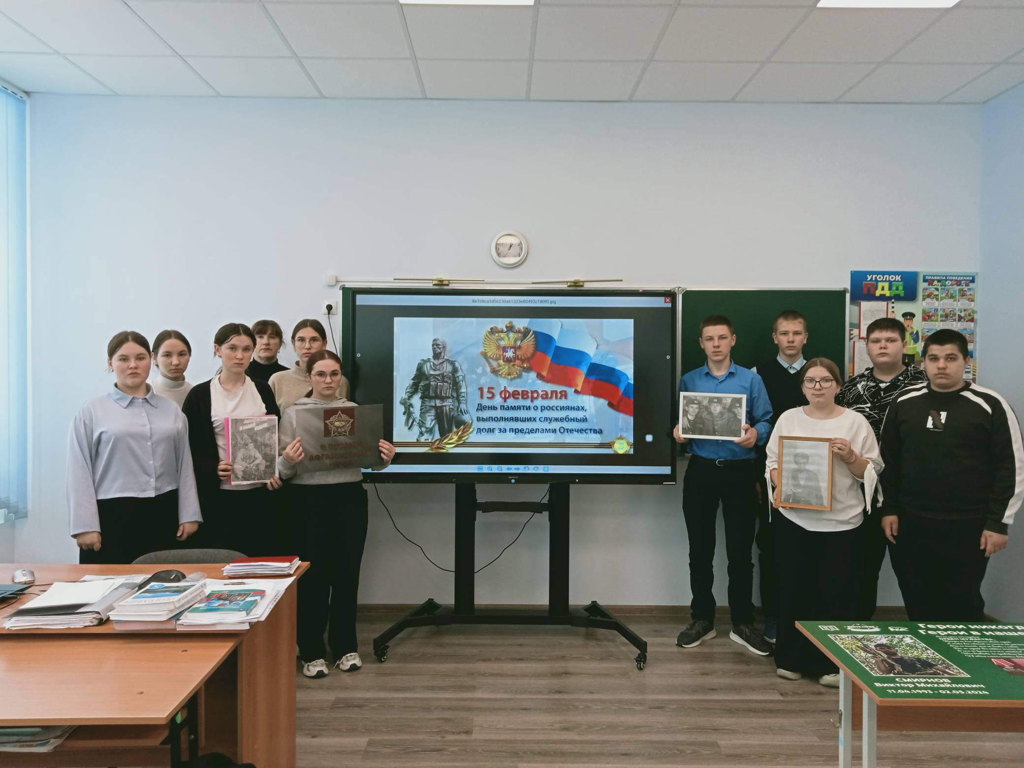 О.В. Глазкова, с присущим ей мастерством, провела ребят через важнейшие страницы истории, связанные с участием советских солдат в военных конфликтах за пределами страны. Она рассказала о трудном пути воинов-интернационалистов, о героизме и самоотверженности, проявленных вдали от дома, о несгибаемой воле и преданности долгу, даже в самых сложных условиях. Особое внимание было уделено подвигу наших земляков, тех, кто ценой своей жизни выполнял ратный долг.