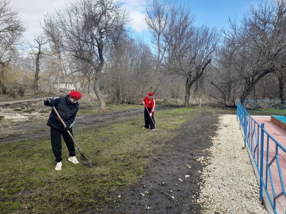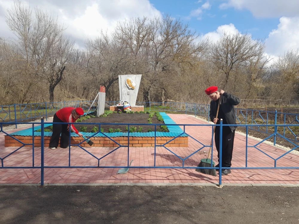 Вооружившись необходимым инвентарем, ребята и заместителем директора по ВР Павловой Г.И с удовольствием приводили в порядок территорию. Все трудились с большим душевным подъемом. Уставшие, но с отличным настроением закончили работу. Приятно было видеть результат своего труда, каждый внес в это дело частичку своего тепла. Чистая территория возле захоронения погибшим воинам радует глаз всех окружающих.
