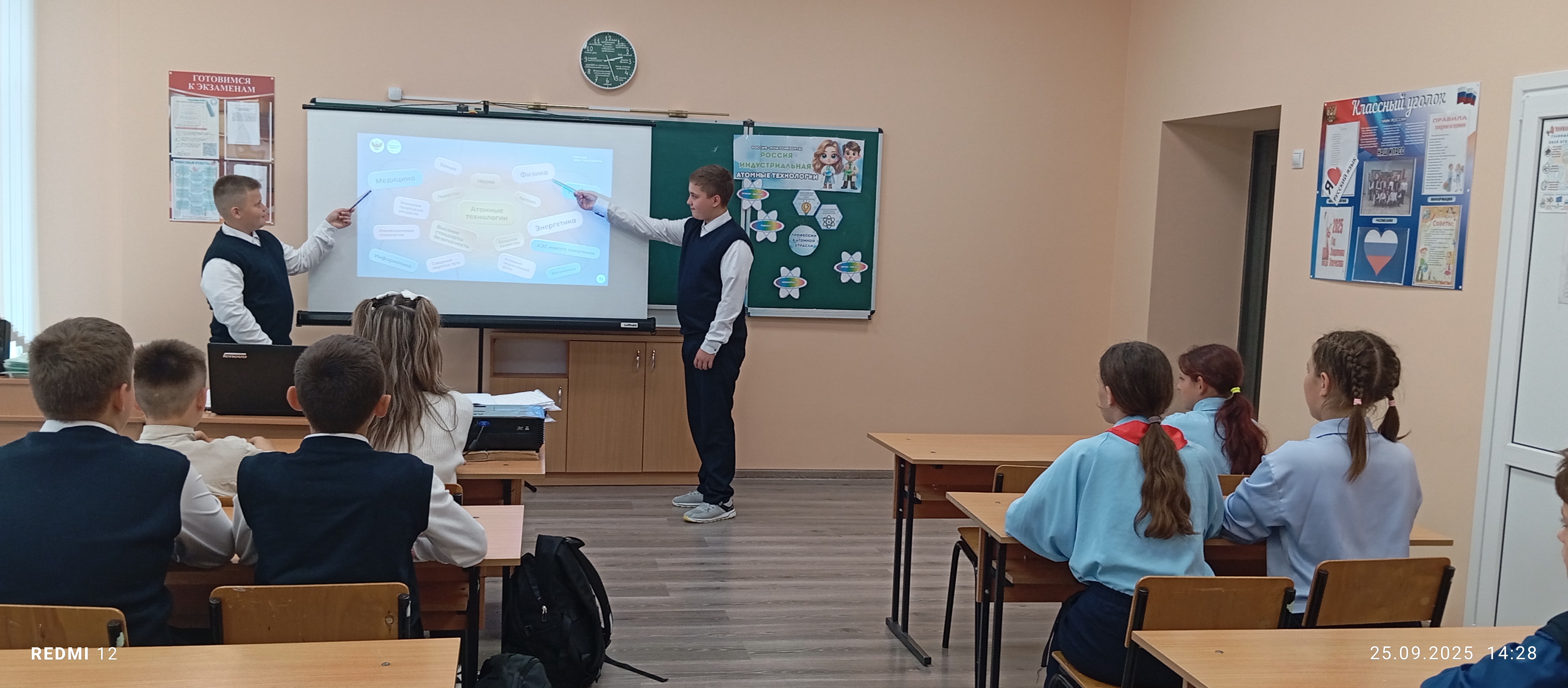 На еженедельном уроке "Россия - мои горизонты" обучающиеся 6-10 классов приняли участие в занятии по теме «Россия индустриальная: атомные технологии. Развитие педагогического образования в Орловской области как основа качества школьного обучения».