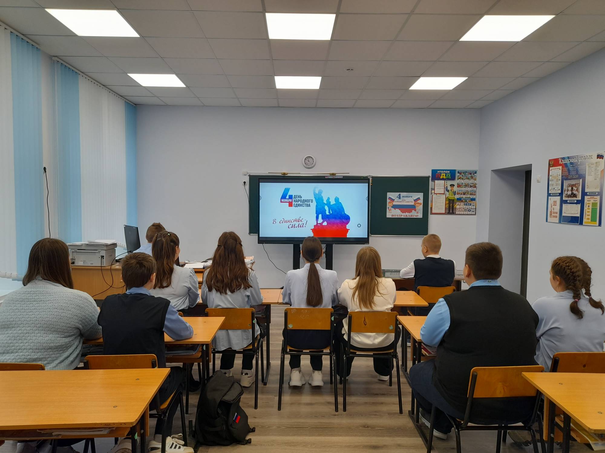 Для обучающихся школы был проведен классный час ко Дню народного единства.